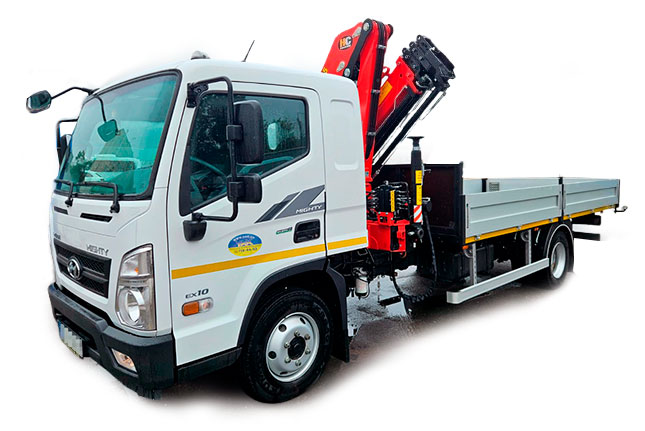 - Бортова платформа зі знімними бортами з алюмінію, додатково кран-маніпулятор для навантаження вагою до 3,65 т.